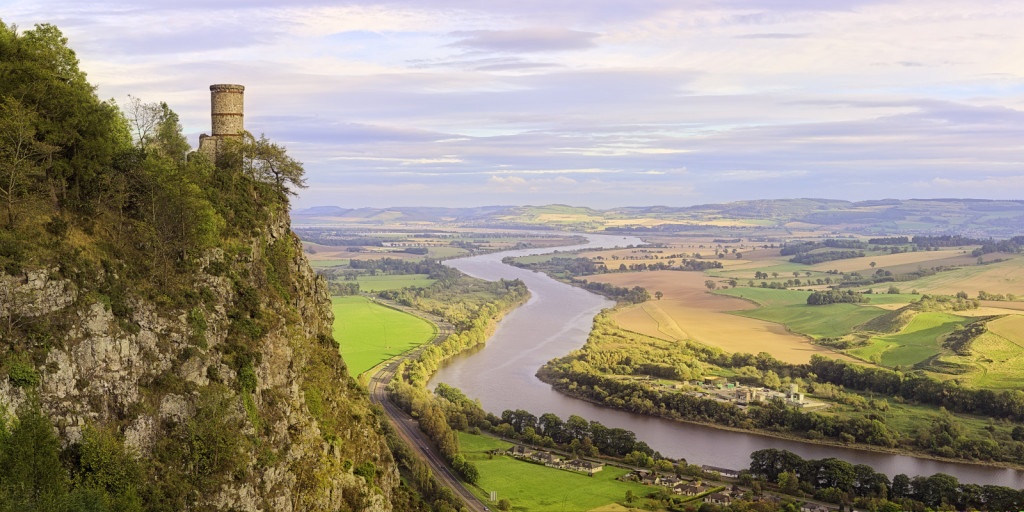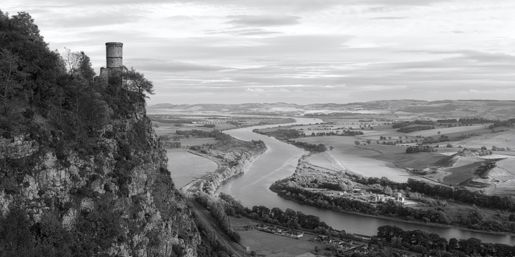It has to be done – the view from Kinnoull Hill, past the folly looking along the River Tay wending its way through the Carse of Gowrie.