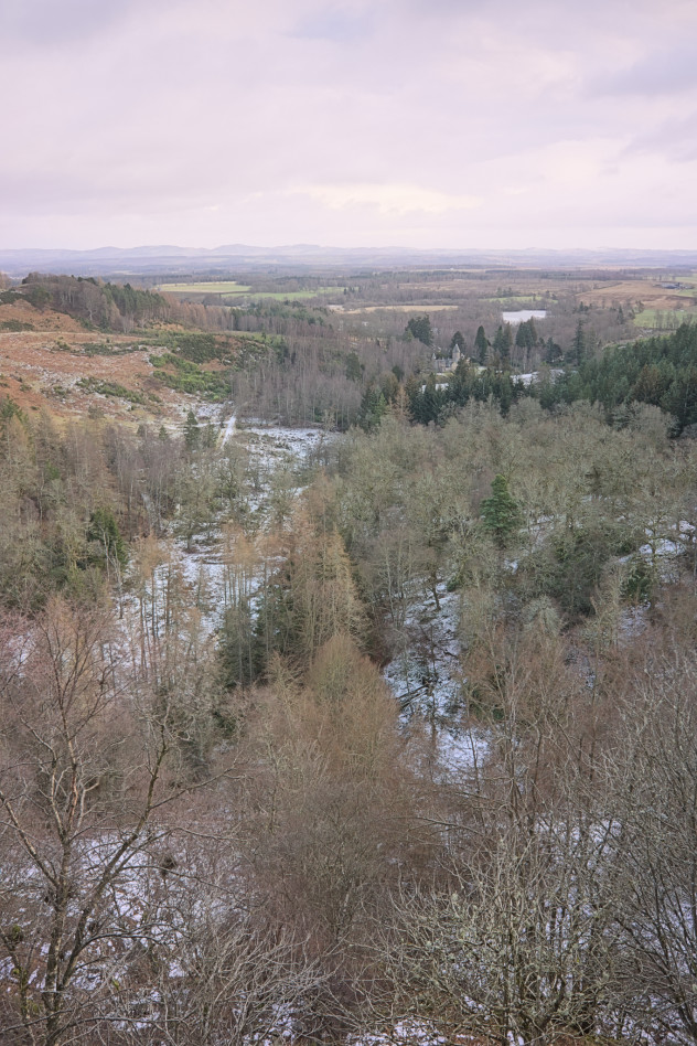 Photos from around the Highland Boundary Fault: the first psammite / semi-pelite rocks beside the path, a valley through which the fault runs, and a feather. Don’t ask how long it took to photograph the feather.