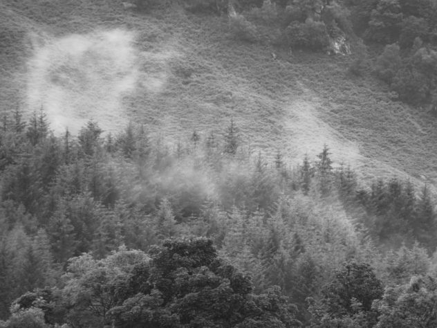 A few months ago now, I spent a happy Saturday afternoon driving around the countryside – visited some old haunts and refreshed memories. I had it in mind to spend some time shooting the well-known statue Still by Rob Mulholland in Loch Earn at St Fillan’s, but was more taken by the landscape en route – a little mist rising off a forest, clouds so low they obscure the outlines of the mountains.