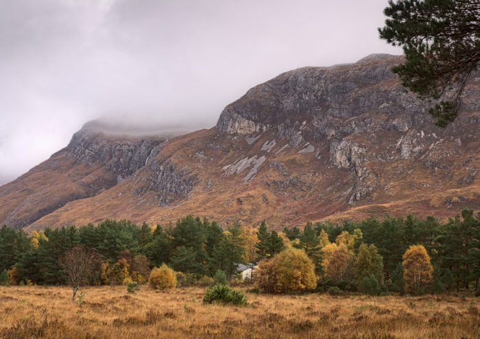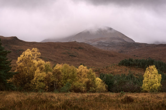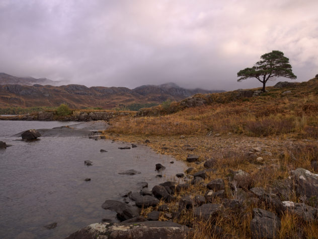 There wasn’t much to be said for the views across Loch Maree, although the contrast of dull grey skies and warm autumnal orange and yellow colours was pleasant.