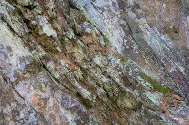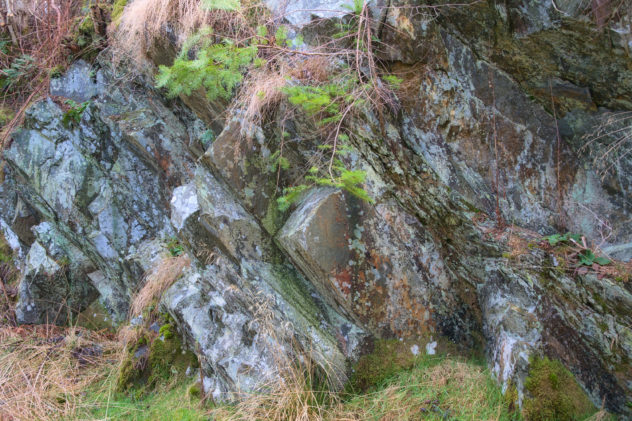 On my first visit I walked around Duncan’s Hill through Birnam Wood and Rochanroy Wood: I observed a particular lump of rock exhibiting clear strata sticking out of the hillside: