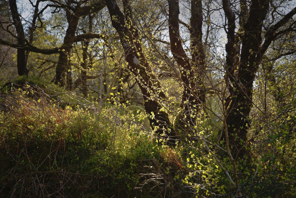 A handful of photos from a walk in the woods in Morvern – mostly native birch and oak trees, back-lit by low golden late-afternoon sunlight – absolutely beautiful. Come walk with me.