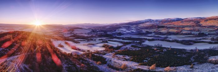 So late on Sunday afternoon I took the drone for a spin slightly out over the strath and made a panorama of 7 shots, each a 5-shot HDR exposure bracket sequence – blended on Linux, stitched and edited in Serif Affinity Photo for the iPad.