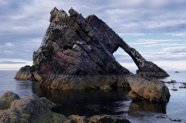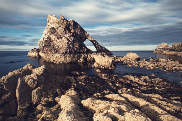 Having spent all last Friday having the day off for the purposes of swapping the gear, I called in at Portknockie to make some photos of the well-known Bow Fiddle rock. The tide was low, requiring more care scrambling over the rocks.