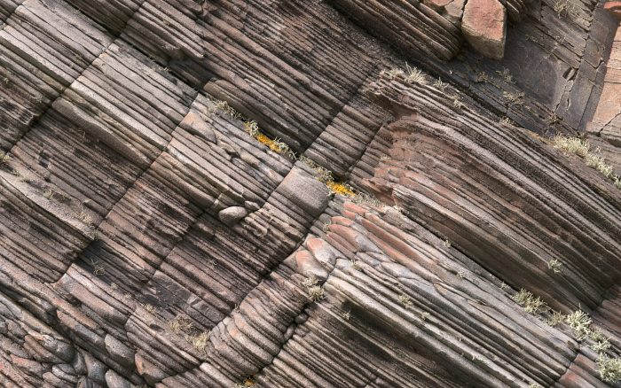 A perfect subject for an abstract art: dense close strata layers of psammite (mid/coarse-grained metamorphosed sandstone) tightly packed.