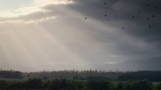 Two photos from a stroll down the road on a warm summer evening Lovely dark ominous clouds, throwing the bright...
